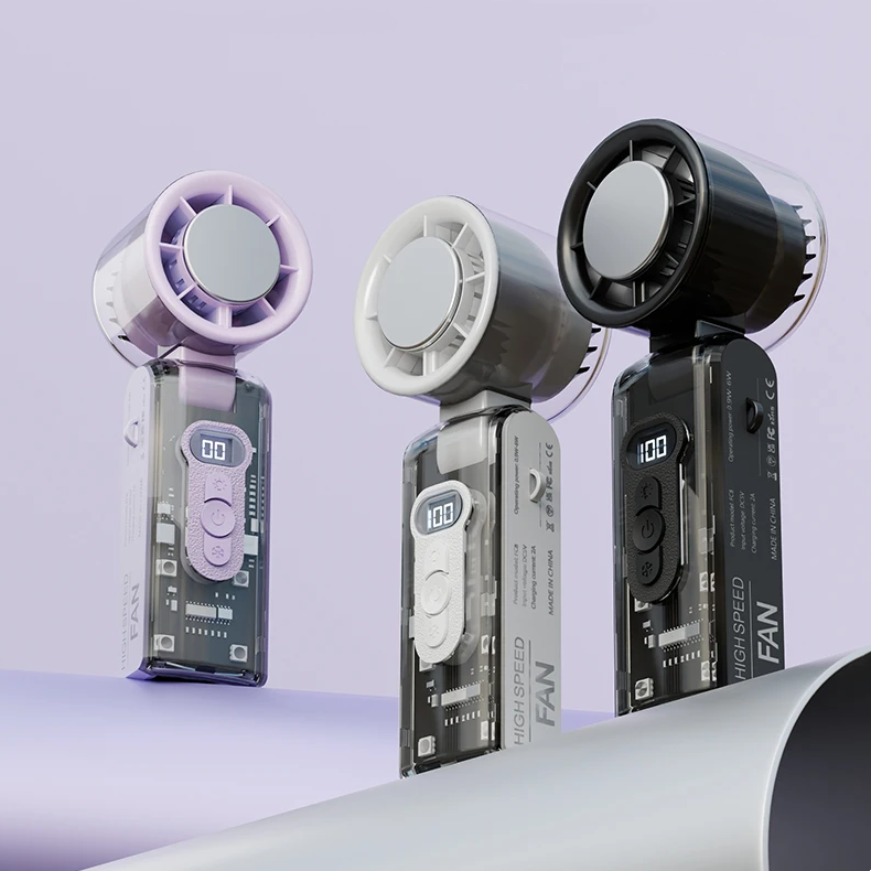 Foldable Mini Cooling Fan – Rechargeable with LED Screen-Purple