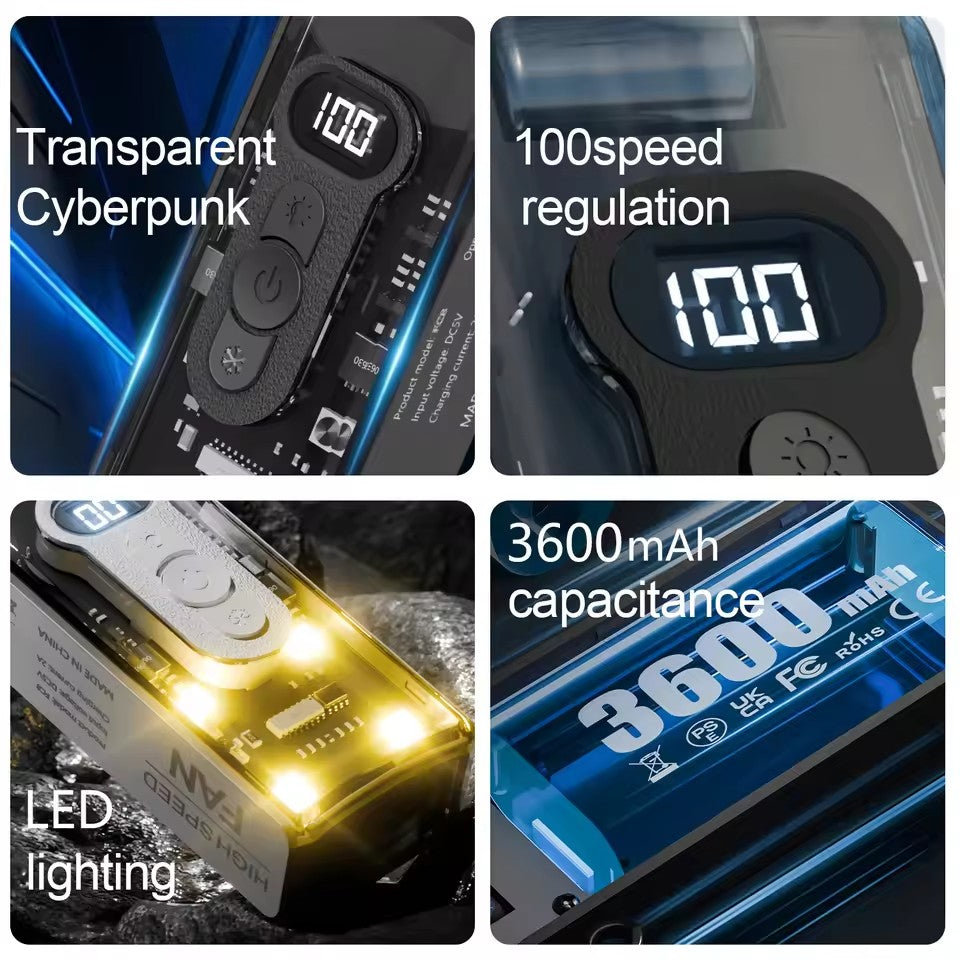 5.Long-lasting 3600mAh Battery: Built-in with a large capacity battery, this foldable personal cooling fan provides long endurance and features an LED light, making it easy for outdoor carrying and use.
