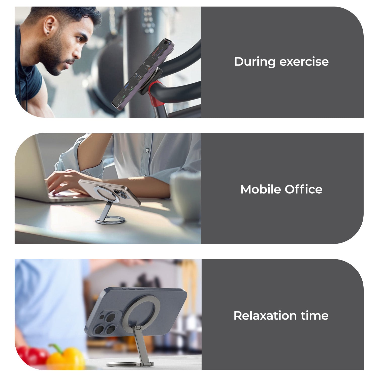 360-Degree Adjustable Viewing Angle The full-angle rotation feature allows you to adjust the holder to any desired angle, giving you the flexibility to view your screen in portrait or landscape orientation. Whether you're video chatting, following a recipe, or using your phone for navigation, this holder provides an optimal viewing experience.